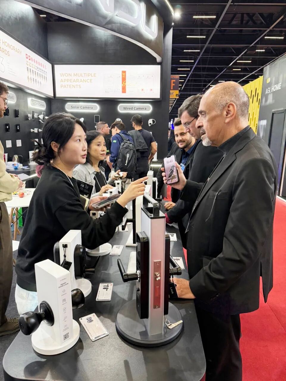 LNDU2025最新推出的智能门锁旗舰系列,分别采用人脸识别+掌静脉解锁+指纹解锁+手机APP远程控制解锁等多重安全验证;推出可视门铃门锁、Homekit多生态合作门锁、自定义锁帖等多样化门锁让出入方式更便捷。LNDU智能门锁设计低功耗超长续航、防撬报警、临时密码分享等功能,让用户享受更加智能的智慧生活。展会现场,众多客商亲自体验后,纷纷赞叹LNDU智能门锁强大的安全性能。