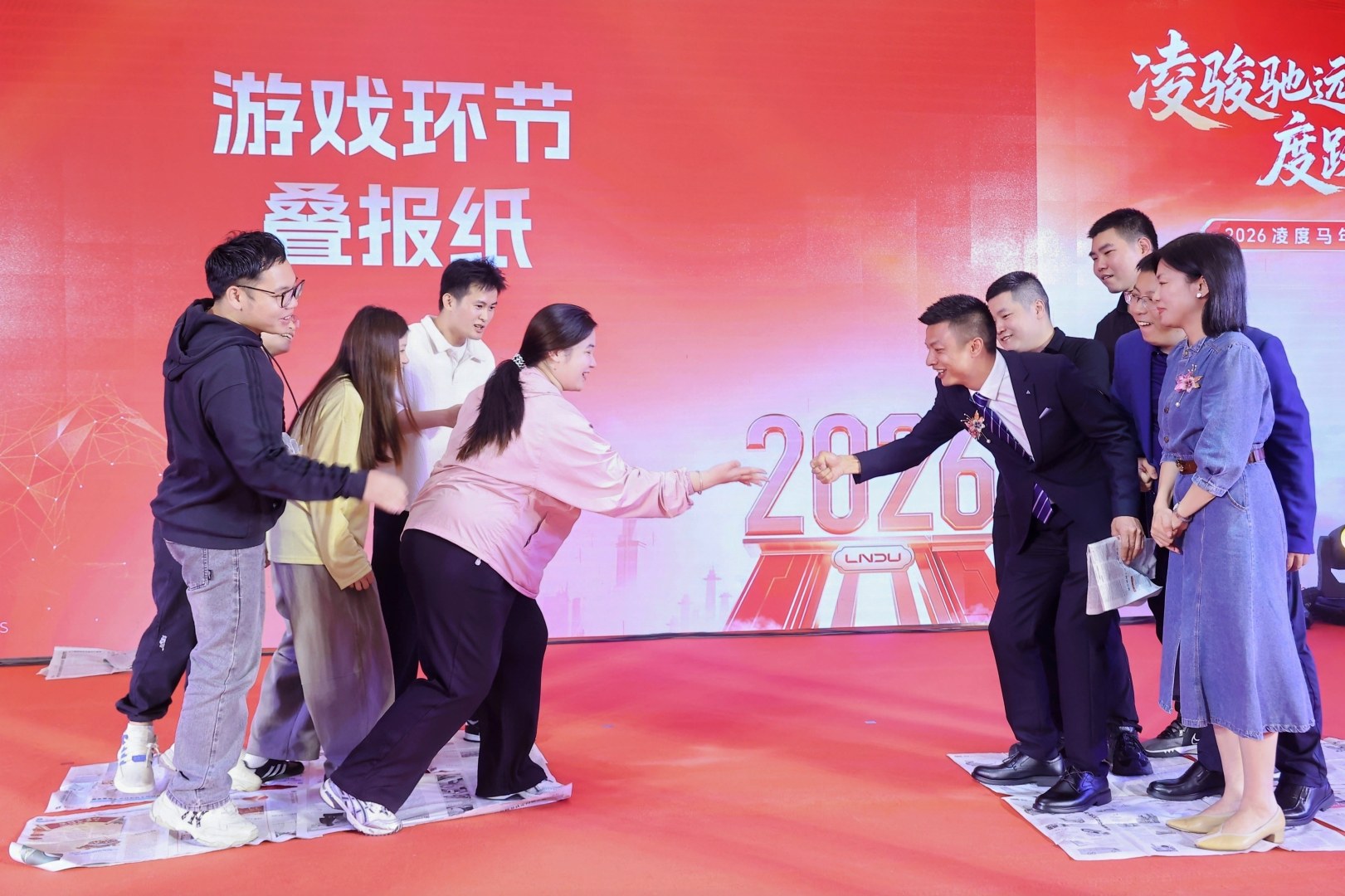 盛典现场不仅有精彩的才艺表演,令人心动的抽奖及颁奖环节,更有欢乐十足的互动游戏。大家踊跃参与、默契配合,为了团队荣誉奋力拼搏,欢呼声、呐喊声、笑声交织在一起。每一个游戏都充满趣味与挑战,每一次互动都彰显着LNDU家人的凝聚力与向心力,游戏活动不仅丰富了盛典内容,更让大家在轻松愉悦的氛围中,感受到了LNDU大家庭的温暖与活力,为接下来的表彰环节注入了更多热情与动力。